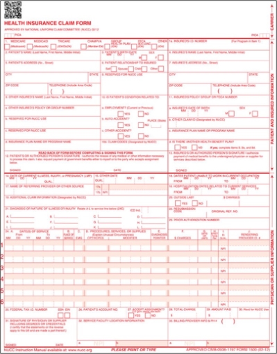 CMS-1500 3-Part - Continuous (White/Canary/Pink Paper Sequence) (NEW VERSION 08/05) 1000 ONLY: $80.00 compare @ $154.29
